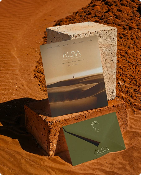 We developed the full brand identity for Alba Studio & Experiences - logo, visual system, and AI-generated brand world - designed to land as confidently in a pitch deck as on an Instagram grid.