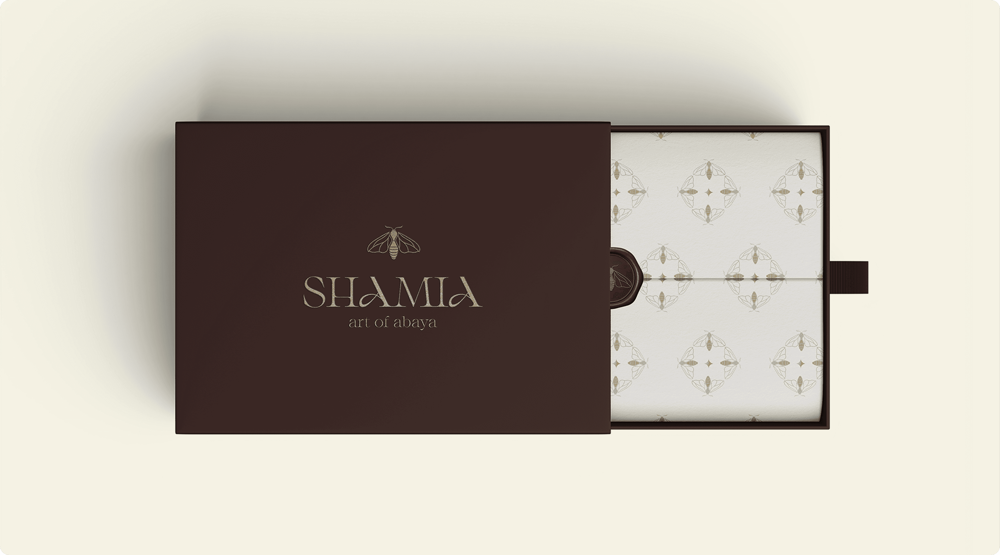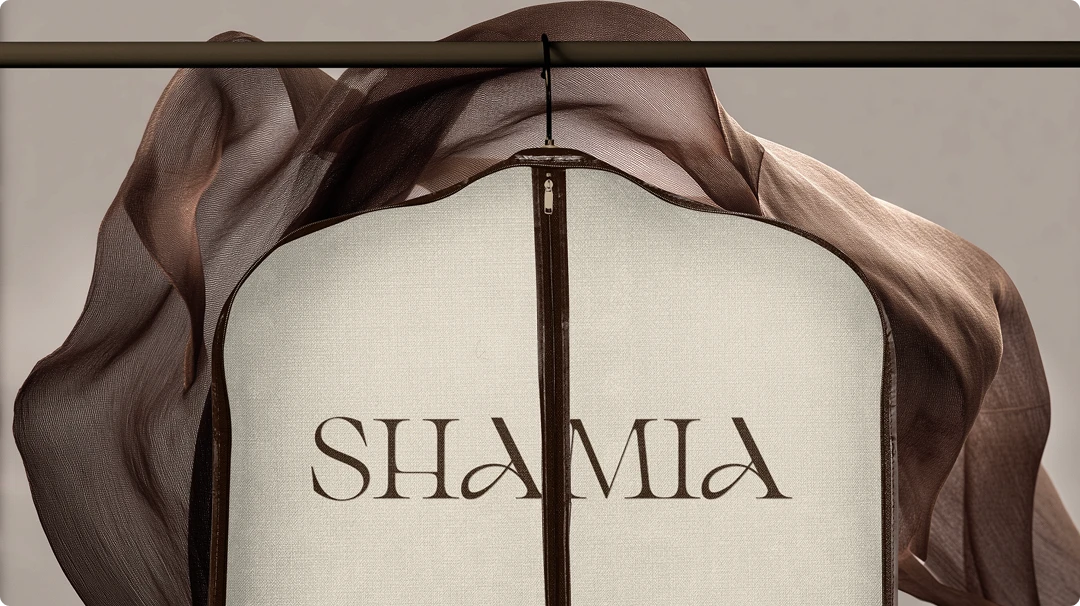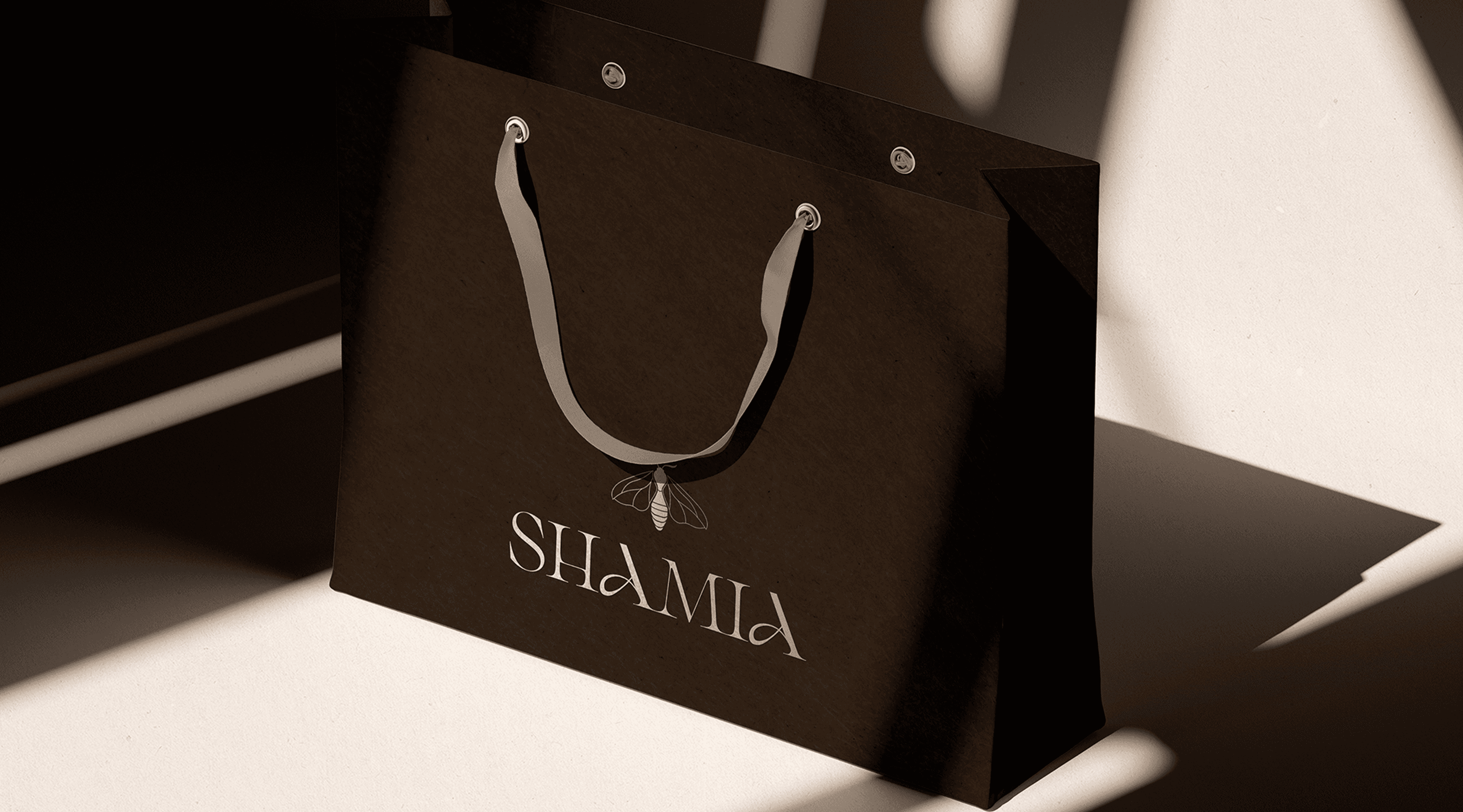 We designed a complete packaging and stationery system for Shamia - from shopping bags to thank-you cards - built to make every touchpoint feel as intentional as the garment itself.
