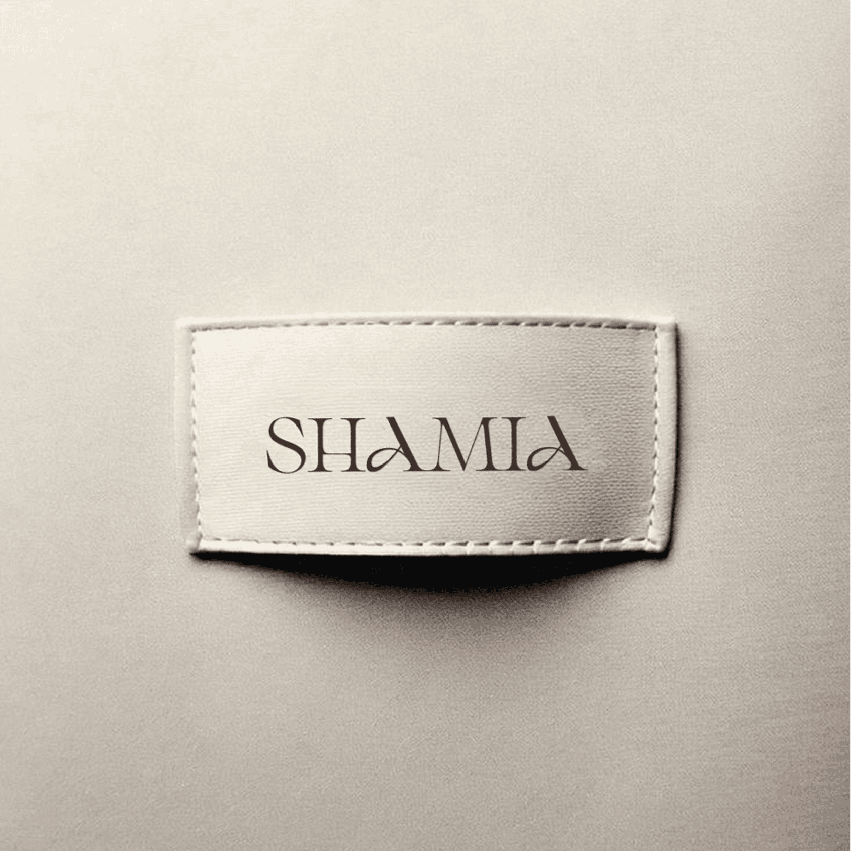Shamia needed a full brand from scratch. Not just a logo, but a complete visual world - one that could carry across tags, tissue paper, shopping bags, a Shopify store, and an Instagram feed full of AI-generated editorial imagery.